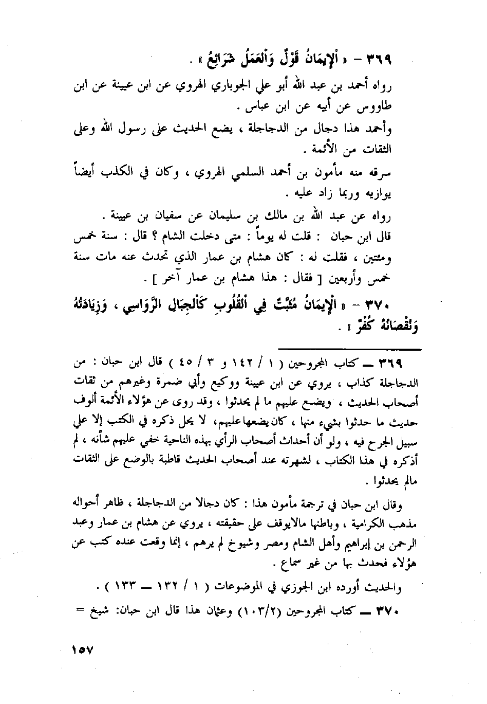 370 - «الإِيمَانُ مُثْبَتٌ فِي الْقُلُوبِ كَالْجِبَالِ الرَّوَاسِي، وَزِيَادَتُهُ وَنُقْصَانُهُ كُفْرٌ» .