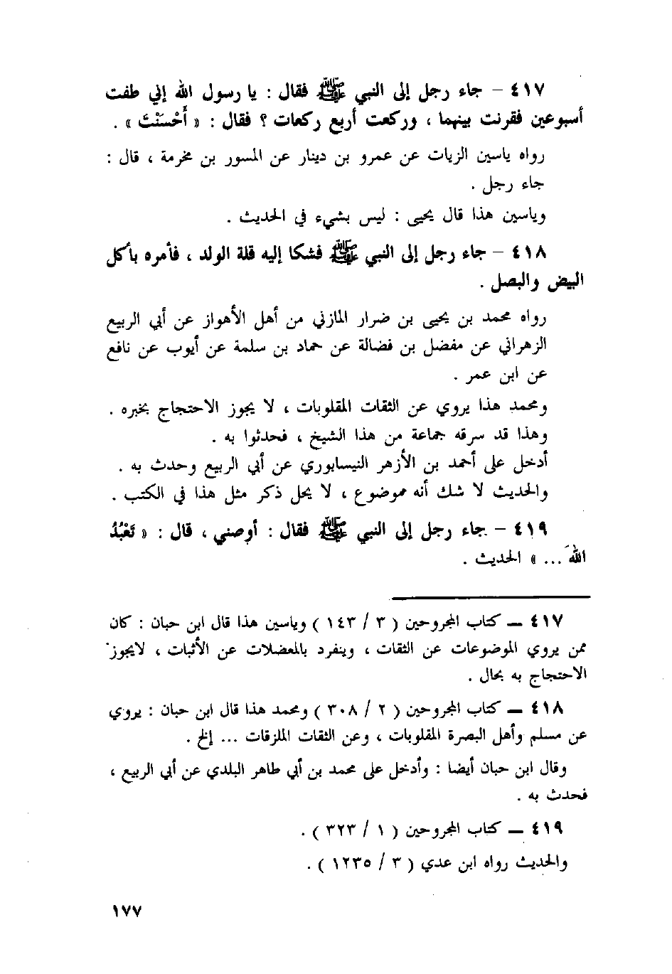 417 - جَاءَ رَجُلٌ إِلَى النَّبِيِّ صَلَّى اللَّهُ عَلَيْهِ وَسَلَّمَ فَقَالَ: يَا رَسُولَ اللَّهِ إِنِّي طُفْتُ أُسْبُوعَيْنِ فَقَرَنْتُ بَيْنَهُمَا، وَرَكَعْتُ أَرْبَعَ رَكَعَاتٍ؟ فَقَالَ: «أَحْسَنْتَ» .
