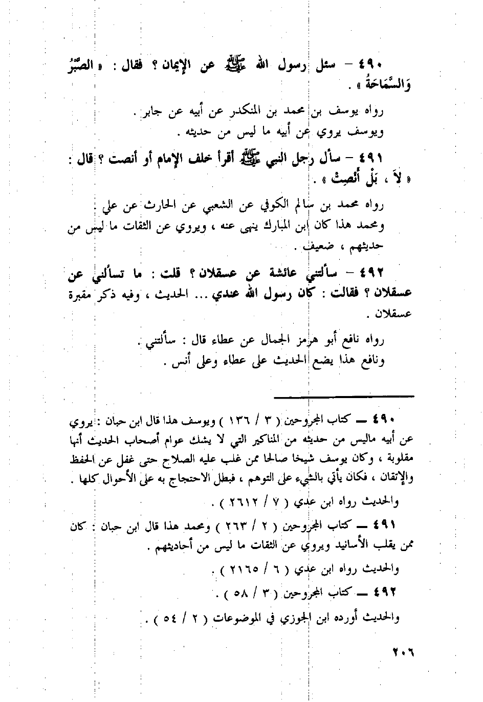 490 - سُئِلَ رَسُولُ اللَّهِ صَلَّى اللَّهُ عَلَيْهِ وَسَلَّمَ عَنِ الإِيمَانِ؟ فَقَالَ: «الصَّبْرُ وَالسَّمَاحَةُ» .
