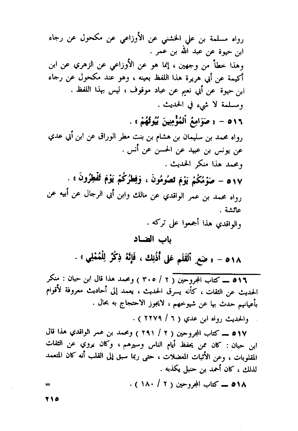 518 - «ضَعِ الْقَلَمَ عَلَى أُذُنِكَ، فَإِنَّهُ ذِكْرٌ لِلْمُمْلِي» .