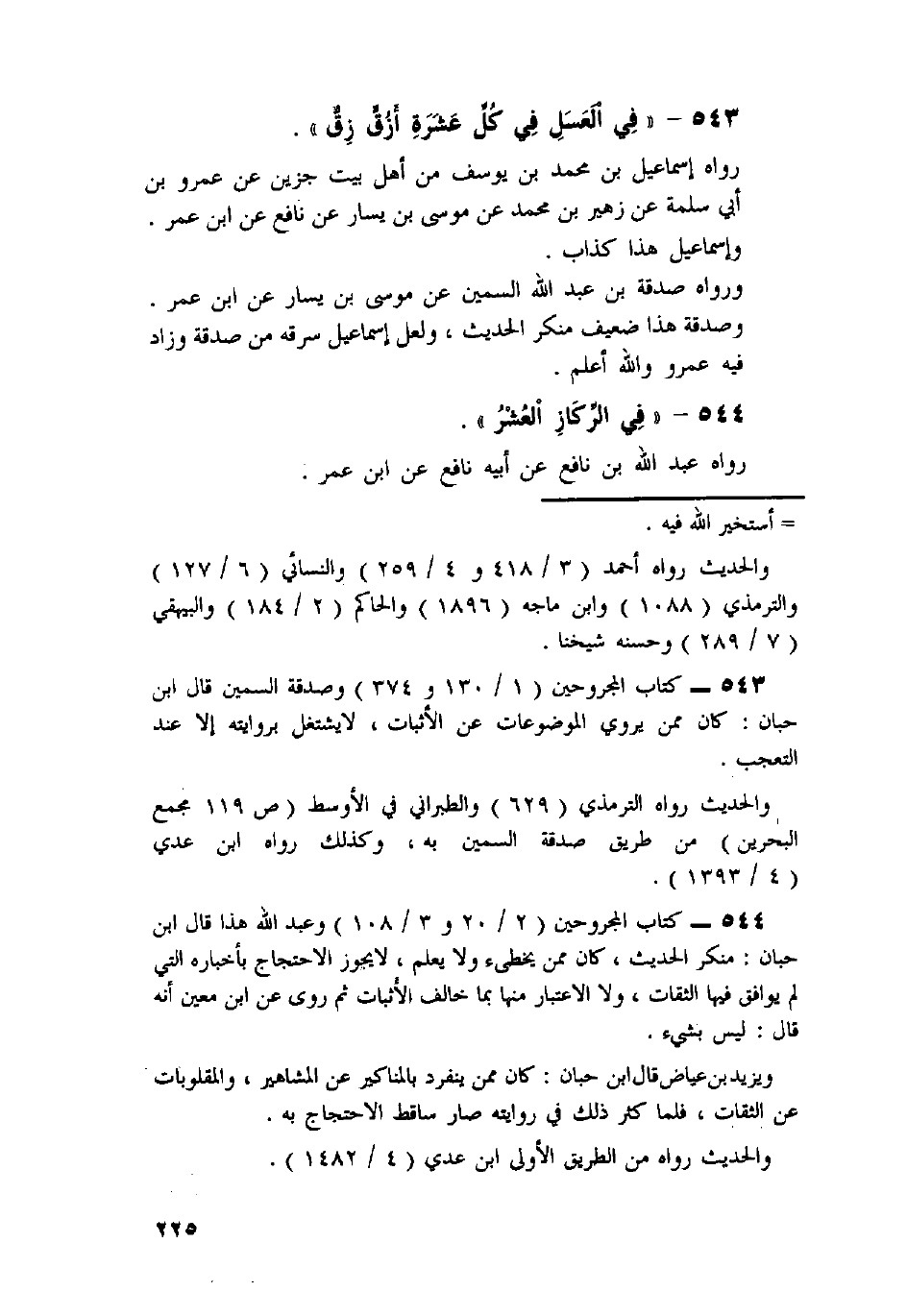 543 - «فِي الْعَسَلِ فِي كُلِّ عَشَرَةٍ أَزُقٍّ زِقٌّ» .