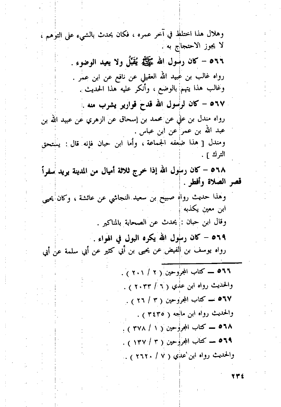 569 - كَانَ رَسُولُ اللَّهِ يَكْرَهُ الْبَوْلَ فِي الْهَوَاءِ.