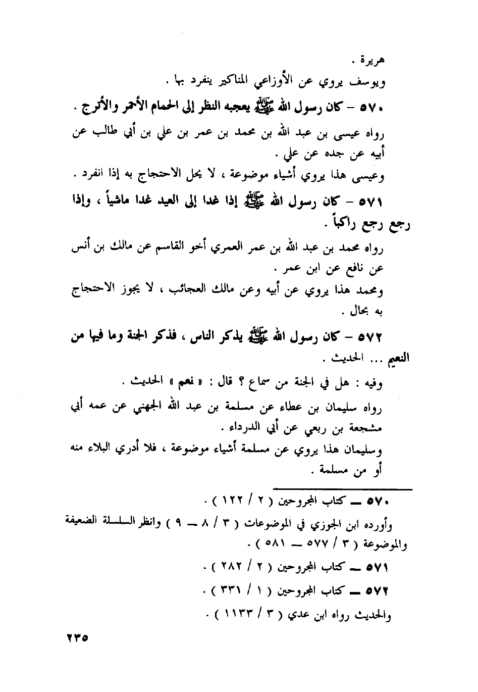 571 - كَانَ رَسُولُ اللَّهِ صَلَّى اللَّهُ عَلَيْهِ وَسَلَّمَ إِذَا غَدَا إِلَى الْعِيدِ غَدَا مَاشِيًا، وَإِذَا رَجَعَ رَجَعَ رَاكِبًا.