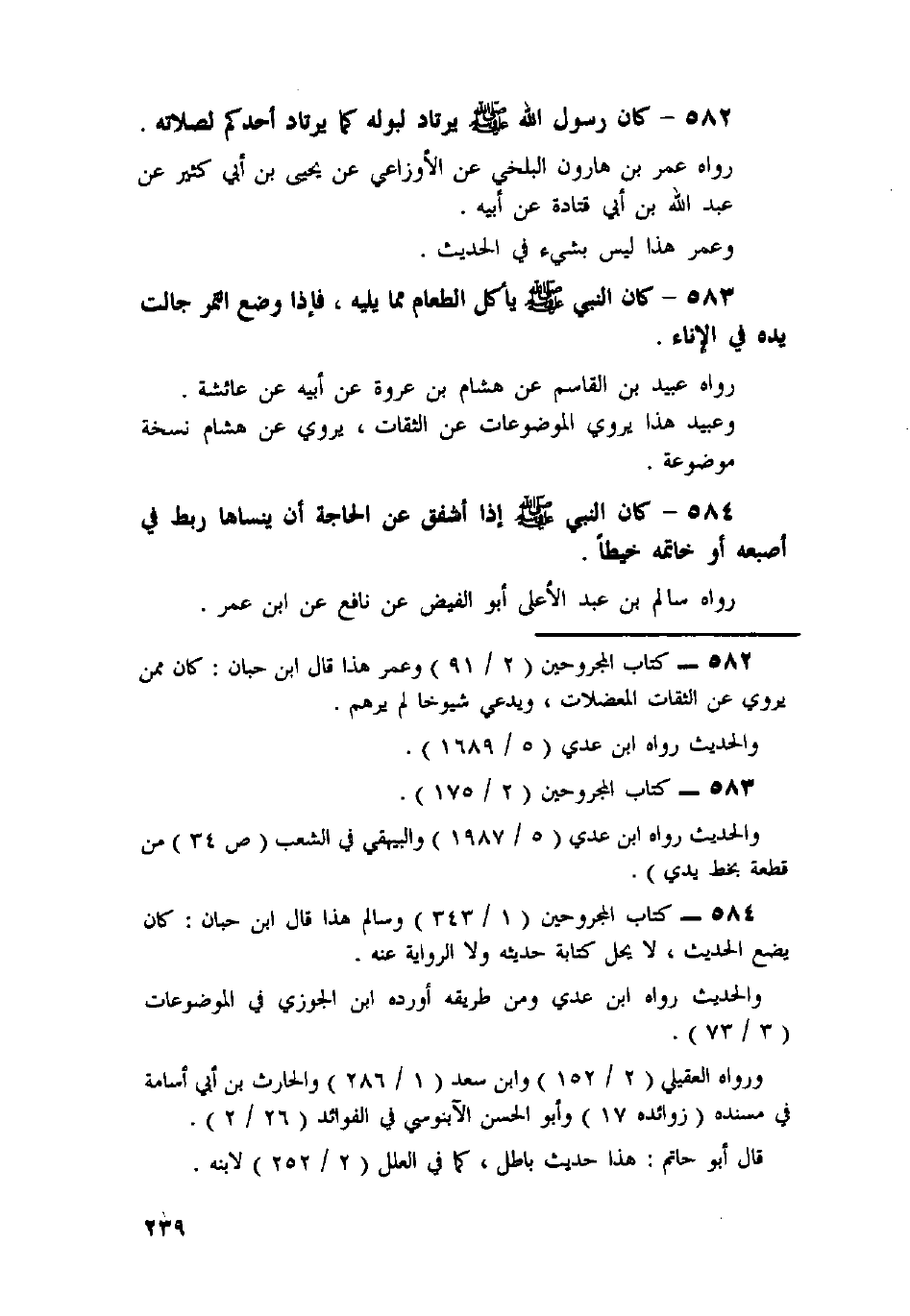 582 - كَانَ رَسُولُ اللَّهِ صَلَّى اللَّهُ عَلَيْهِ وَسَلَّمَ يَرْتَادُ لِبَوْلِهِ كَمَا يَرْتَادُ أَحَدُكُمْ لِصَلاتِهِ.