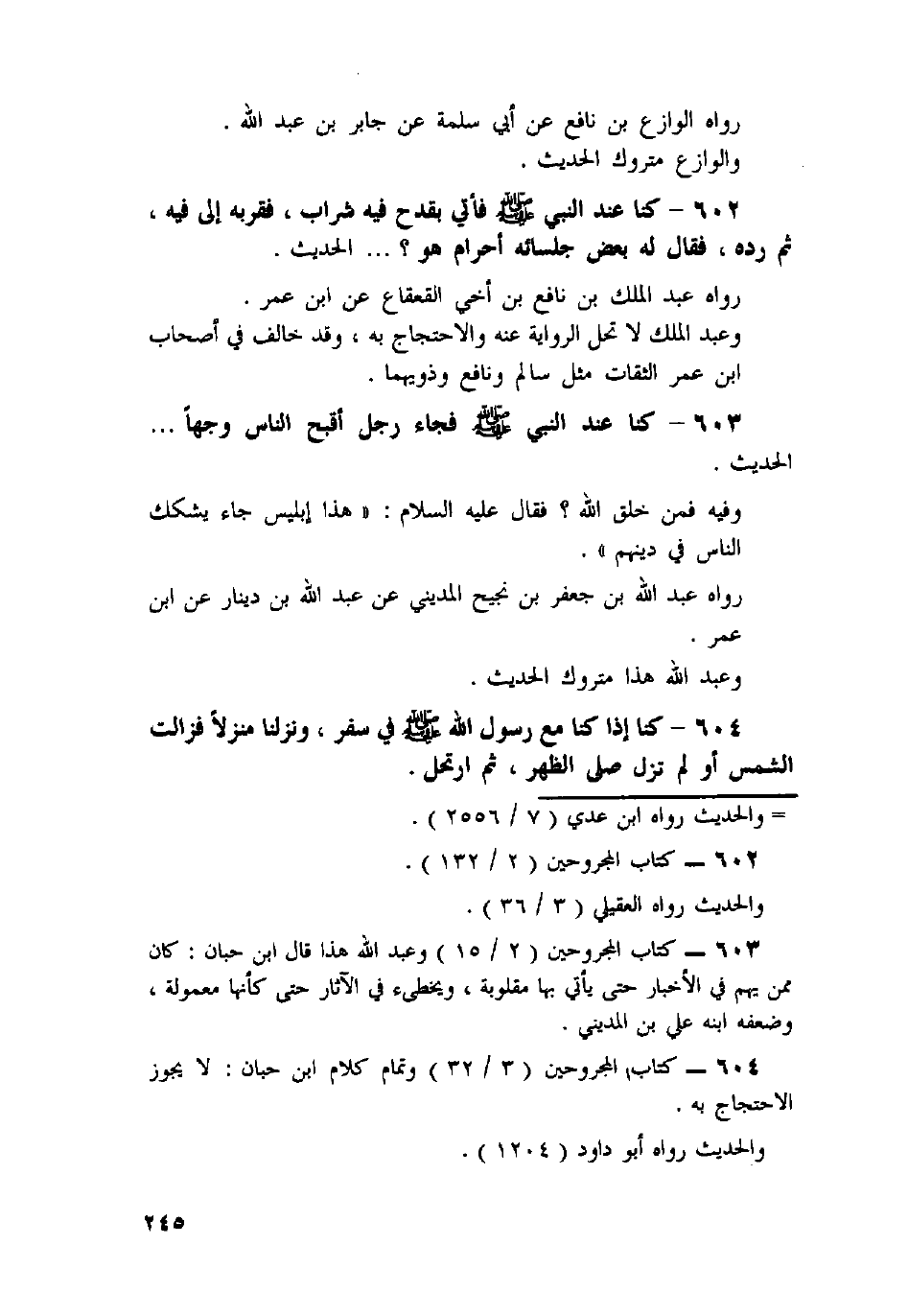 وَعَبْدُ الْمَلِكِ لا تَحِلُّ الرِّوَايَةُ عَنْهُ وَالاحْتِجَاجُ بِهِ، وَقَدْ خَالَفَ فِي أَصْحَابِ ابْنِ عُمَرَ الثِّقَاتِ مِثْلَ سَالِمٍ وَنَافِعٍ وَذَوِيهِمَا.