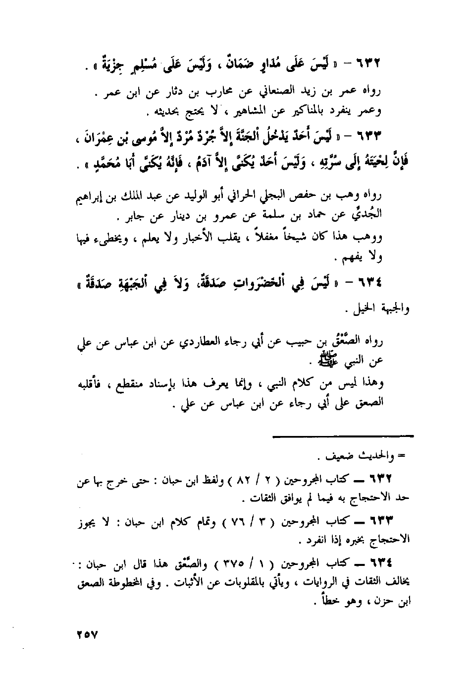 634 - «لَيْسَ فِي الْخَضْرَوَاتِ صَدَقَةٌ، ولا فِي الْجَبْهَةِ صَدَقَةٌ» .