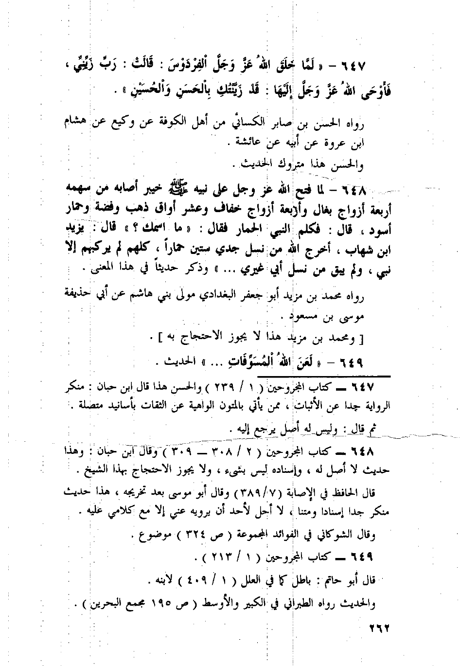 647 - " لَمَّا خَلَقَ اللَّهُ عَزَّ وَجَلَّ الْفِرْدَوْسَ: قَالَتْ: رَبِّ زَيِّنِّي، فَأَوْحَى اللَّهُ عَزَّ وَجَلَّ إِلَيْهَا: قَدْ زَيَّنْتُكِ بِالْحَسَنِ وَالْحُسَيْنِ ".