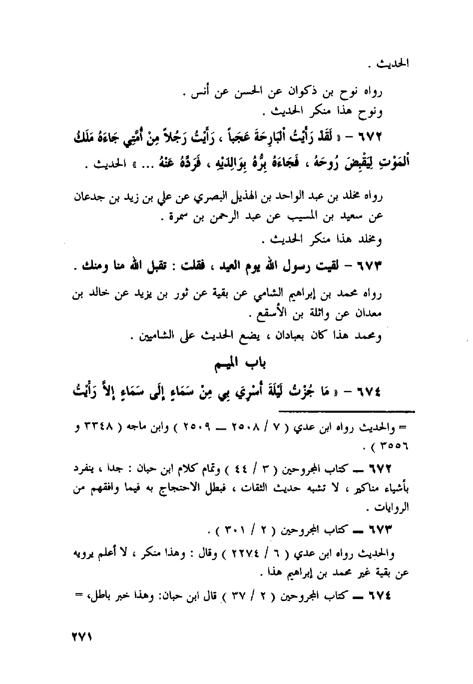 674 - «مَا جُزْتُ لَيْلَةَ أُسْرِيَ بِي مِنْ سَمَاءٍ إِلَى سَمَاءٍ إِلا رَأَيْتُ