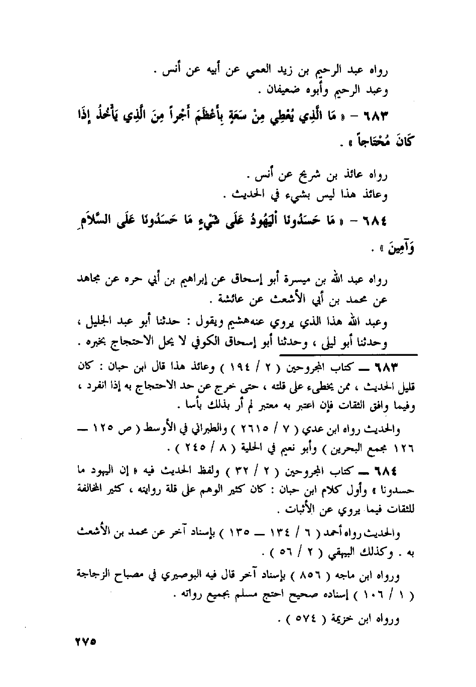 683 - «مَا الَّذِي يُعْطِي مِنْ سَعَةٍ بِأَعْظَمَ أَجْرًا مِنَ الَّذِي يَأْخُذُ إِذَا كَانَ مُحْتَاجًا» .