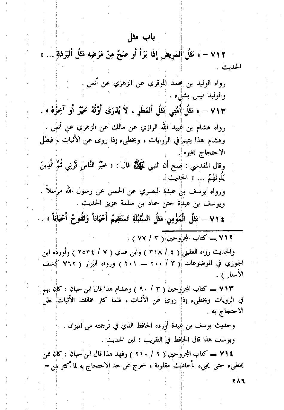 712 - «مَثَلُ الْمَرِيضِ إِذَا بَرَأَ أَوْ صَحَّ مِنْ مَرَضِهِ مَثَلُ الْبُرْدَةِ. . .» .