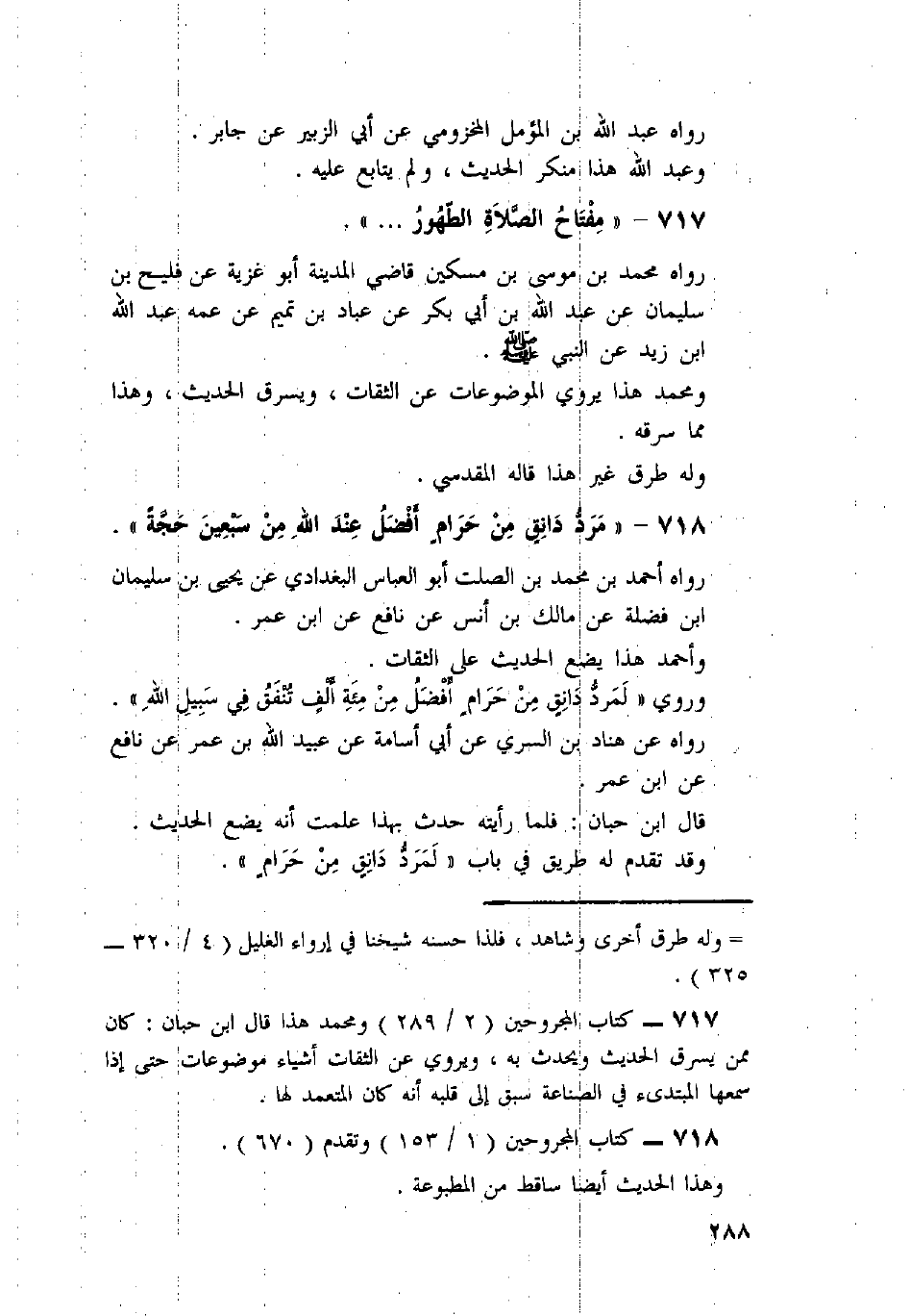 718 - «مَرَدُّ دَانِقٍ مِنْ حَرَامٍ أَفْضَلُ عِنْدَ اللَّهِ مِنْ سَبْعِينَ حَجَّةً» .