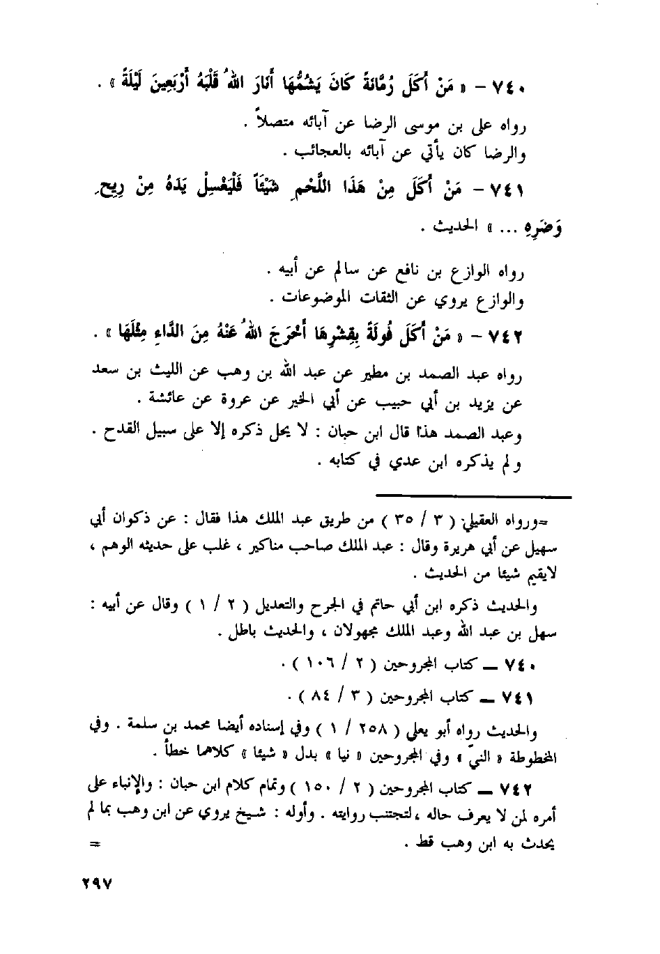 741 - «مَنْ أَكَلَ مِنْ هَذَا اللَّحْمِ شَيْئًا فَلْيَغْسِلْ يَدَهُ مِنْ رِيحِ وَضَرِهِ. . .» الْحَدِيثَ.