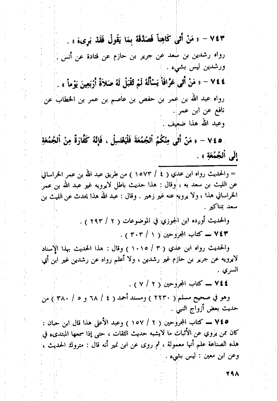 744 - «مَنْ أَتَى عَرَّافًا يَسْأَلُهُ لَمْ تُقْبَلْ لَهُ صَلاةٌ أَرْبَعِينَ يَوْمًا» .