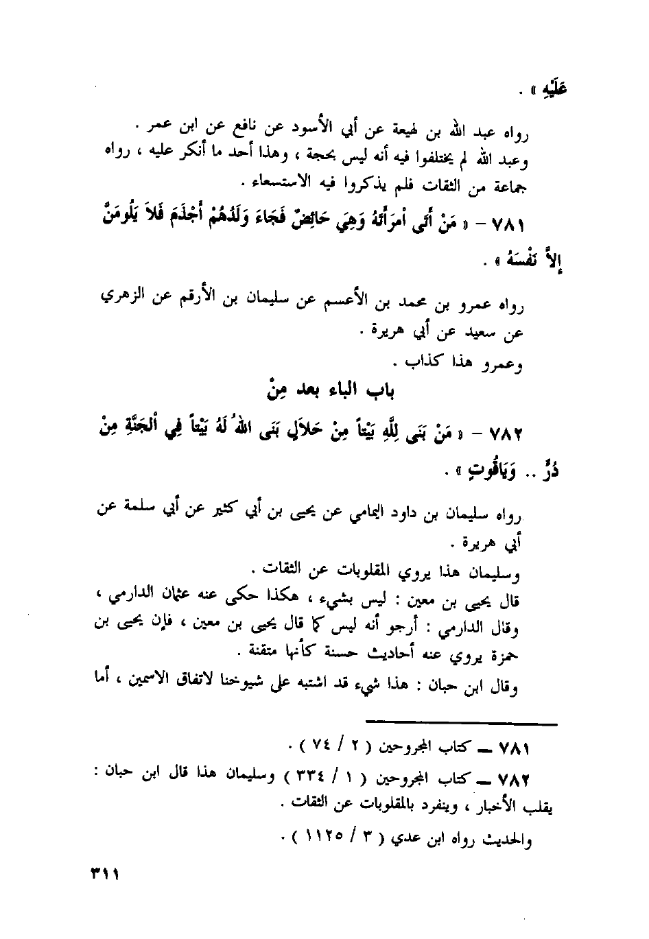 781 - «مَنْ أَتَى امْرَأَتَهُ وَهِيَ حَائِضٌ فَجَاءَ وَلَدُهُمْ أَجْذَمُ فَلا يَلُومَنَّ إِلا نَفْسَهُ» .