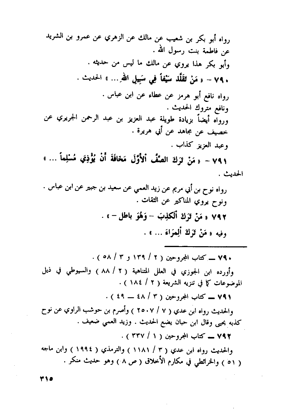 791 - «مَنْ تَرَكَ الصَّفَّ الأَوَّلَ مَخَافَةَ أَنْ يُؤْذِيَ مُسْلِمًا. . .» الْحَدِيثَ.