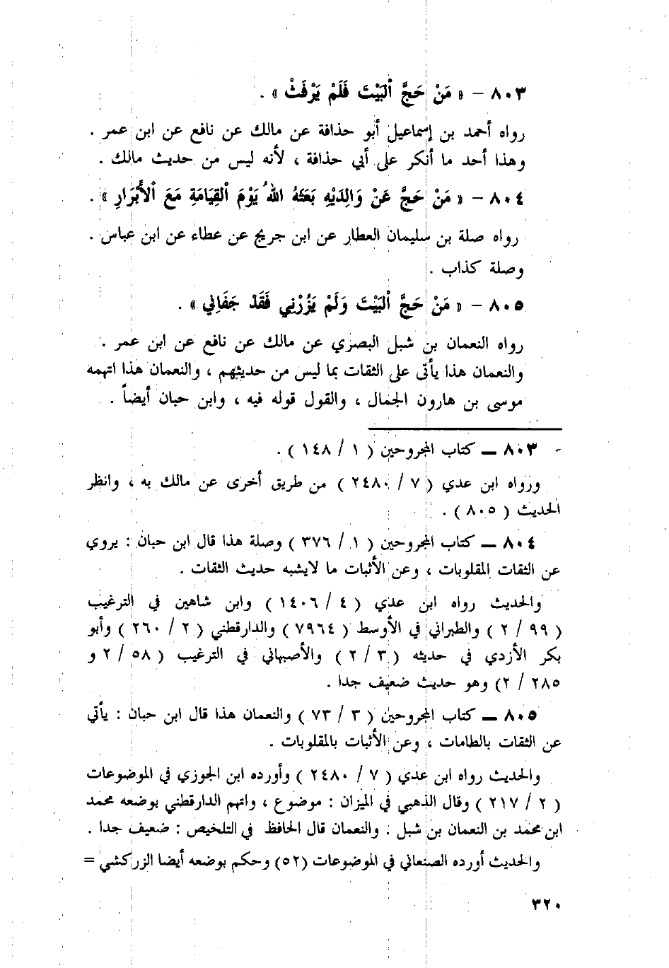 805 - «مَنْ حَجَّ الْبَيْتَ وَلَمْ يَزُرْنِي فَقَدْ جَفَانِي» .