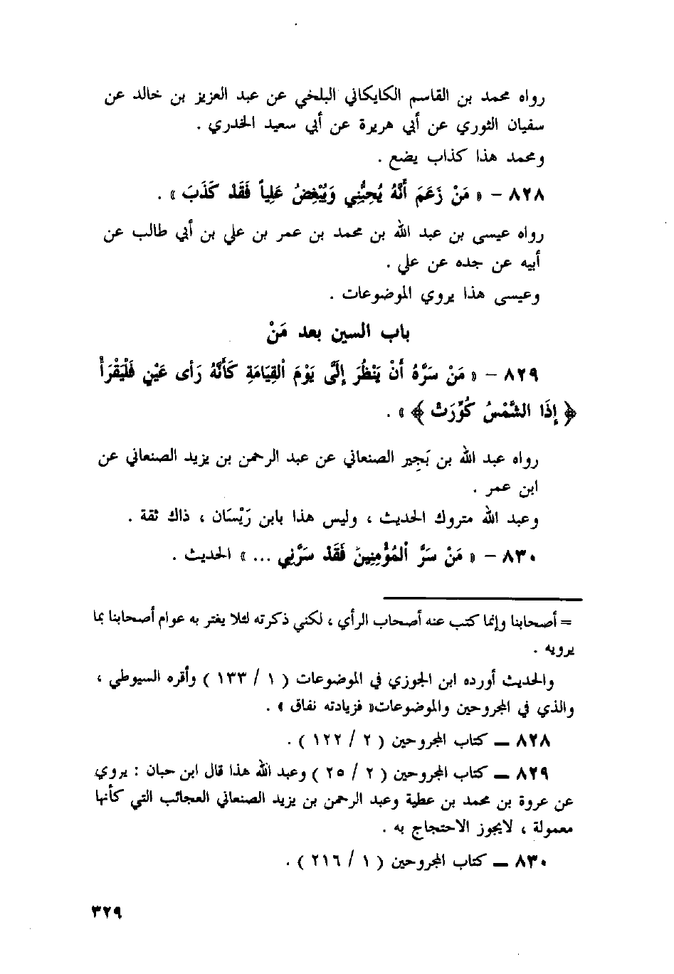 830 - «مَنْ سَرَّ الْمُؤْمِنِينَ فَقَدْ سَرَّنِي. . .» الْحَدِيثَ.