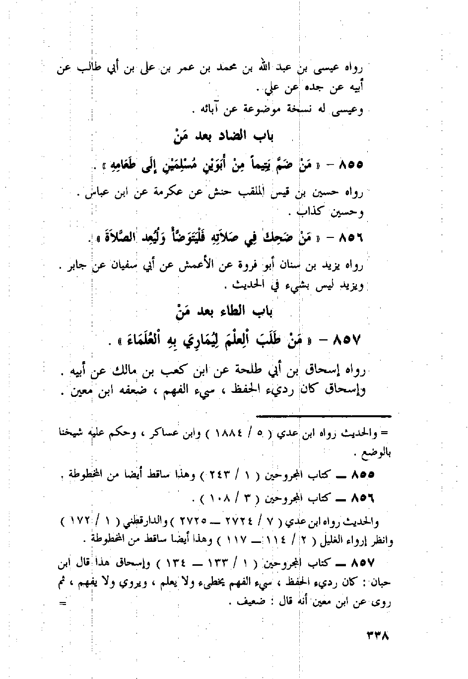 857 - «مَنْ طَلَبَ الْعِلْمَ لِيُمَارِيَ بِهِ الْعُلَمَاءَ» .