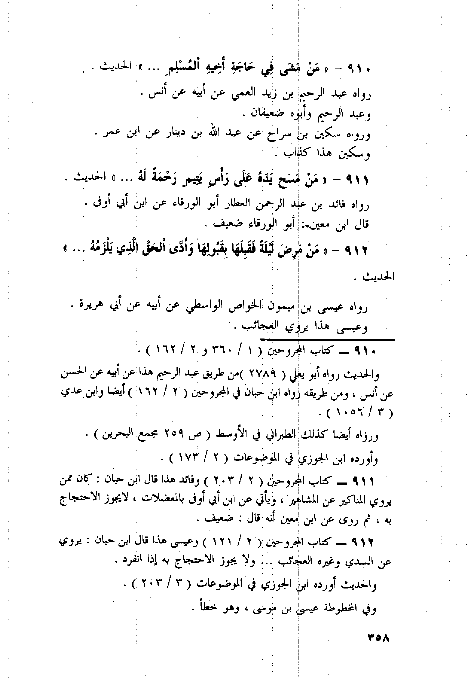 911 - «مَنْ مَسَحَ يَدَهُ عَلَى رَأْسِ يَتِيمٍ رَحْمَةً لَهُ. . .» الْحَدِيثَ.