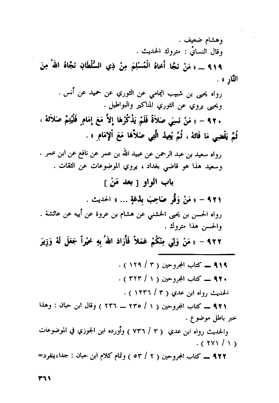 919 - «مَنْ نَجَّا أَخَاهُ الْمُسْلِمَ مِنْ ذِي السُّلْطَانِ نَجَّاهُ اللَّهُ مِنَ النَّارِ» .