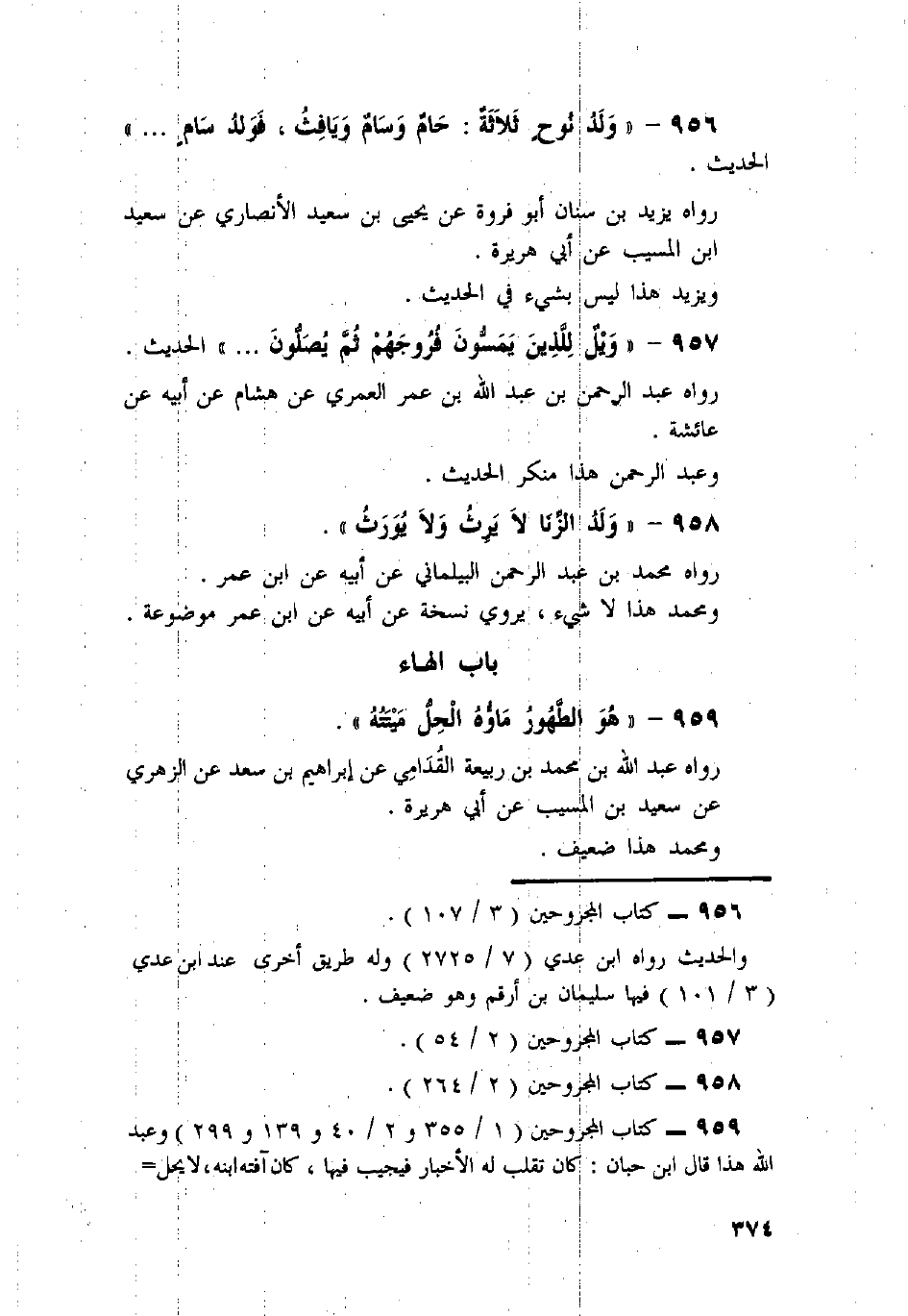 956 - " وَلَدُ نُوحٍ ثَلاثَةٌ: حَامٌ وَسَامٌ وَيَافِثُ، فَوَلَدُ سَامٍ. . . " الْحَدِيثَ.
