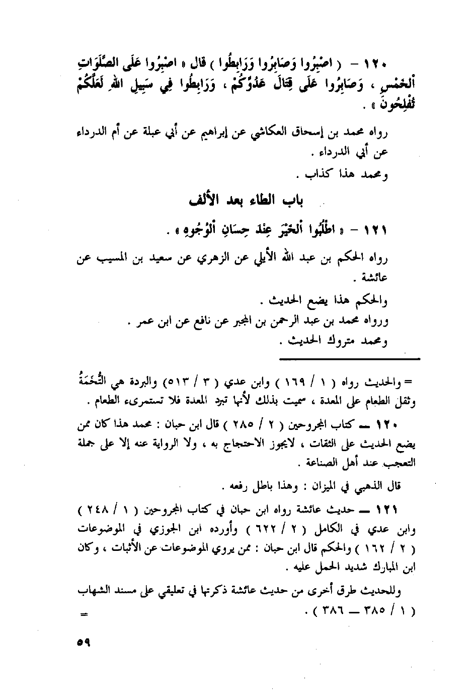 120 - {اصْبِرُوا وَصَابِرُوا وَرَابِطُوا} [آل عمران: 200] قَالَ: «اصْبِرُوا عَلَى الصَّلَوَاتِ الْخَمْسِ، وَصَابِرُوا عَلَى قِتَالِ عَدُوِّكُمْ، وَرَابِطُوا فِي سَبِيلِ اللَّهِ لَعَلَّكُمْ تُفْلِحُونَ» .