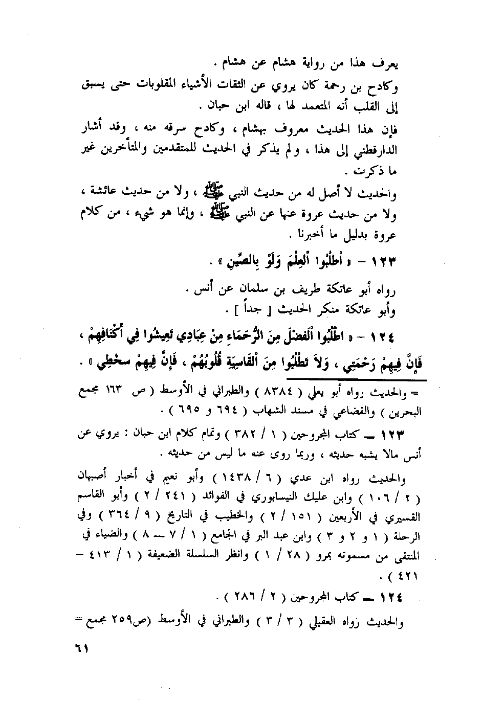 123 - «اطْلُبُوا الْعِلْمَ وَلَوْ بِالصِّينِ» .