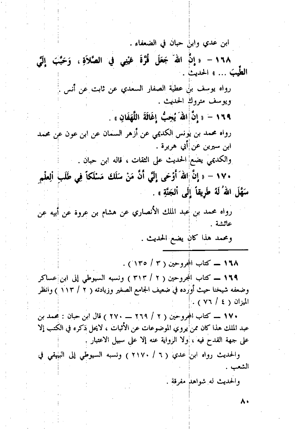 168 - «إِنَّ اللَّهَ جَعَلَ قُرَّةَ عَيْنِي فِي الصَّلاةِ، وَحَبَّبَ إِلَيَّ الطِّيبَ. . .» الْحَدِيثَ.