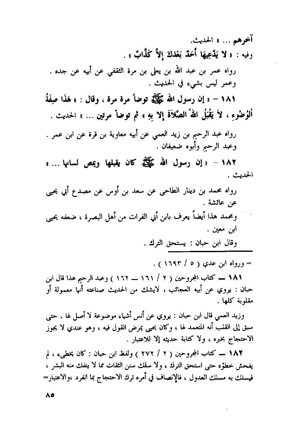 181 - " إِنَّ رَسُولَ اللَّهِ صَلَّى اللَّهُ عَلَيْهِ وَسَلَّمَ تَوَضَّأَ مَرَّةً مَرَّةً، وَقَالَ: «هَذَا صِفَةُ الْوُضُوءِ، لا يَقْبَلُ اللَّهُ الصَّلاةَ إِلا بِهِ» ثُمَّ تَوَضَّأَ مَرَّتَيْنِ. . . " الْحَدِيثَ.
