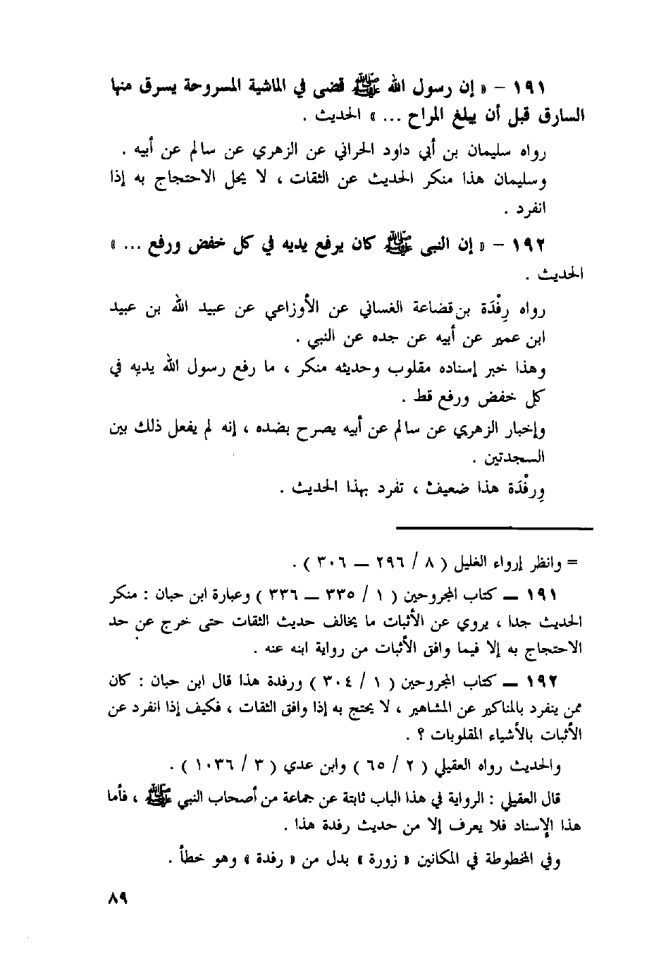 191 - «إِنَّ رَسُولَ اللَّهِ صَلَّى اللَّهُ عَلَيْهِ وَسَلَّمَ قَضَى فِي الْمَاشِيَةِ الْمَسْرُوحَةِ يَسْرِقُ مِنْهَا السَّارِقُ قَبْلَ أَنْ يَبْلُغَ الْمُرَاحَ. . .» الْحَدِيثَ.