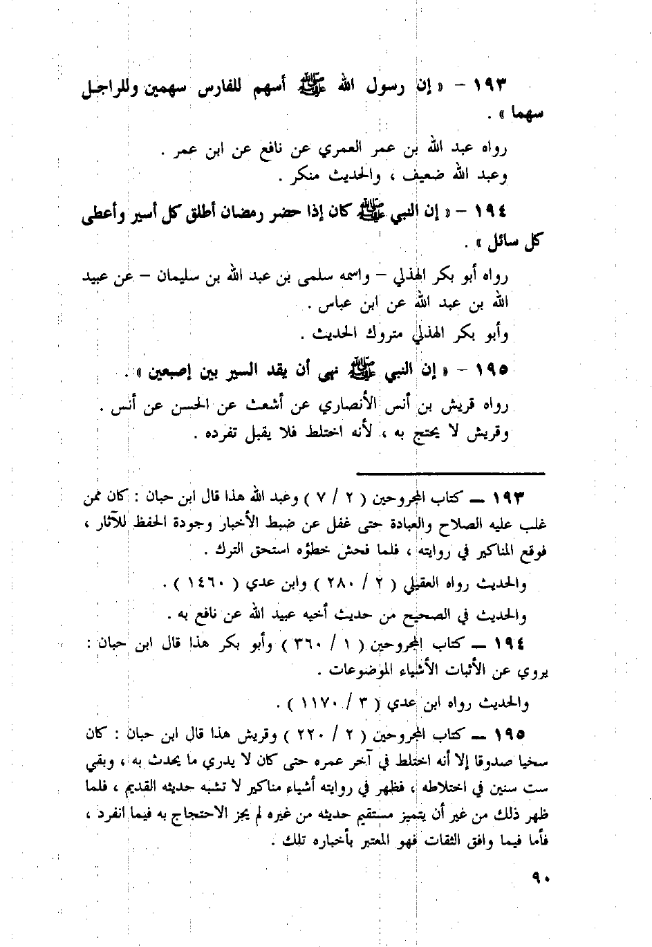 193 - «إِنَّ رَسُولَ اللَّهِ صَلَّى اللَّهُ عَلَيْهِ وَسَلَّمَ أَسْهَمَ لِلْفَارِسِ سَهْمَيْنِ وَلِلرَّاجِلِ سَهْمًا» .