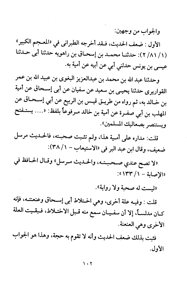 وحدثنا عبد الله بن محمد بن عبد العزيز البغوي بن عبيد الله بن عمر القواريري حدثنا يحيى بن سعيد عن سفيان عن أبي إسحاق عن أمية بن خالد به. ثم رواه من طريق قيس بن الربيع عن أبي إسحاق عن المهلب بن أبي صفرة عن أمية بن خالد مرفوعاً بلفظ: ... يستفتح ويستنصر بصعاليك المسلمين.