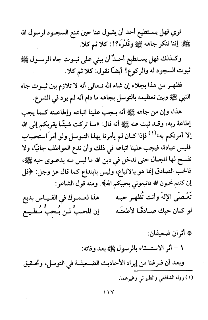 وكذلك فهل يستطيع أحد أن يبني على ثبوت جاه النبي صلى الله عليه وسلم ثبوت السجود له والركوع؟ أيضا نقول: كلا ثم كلا.