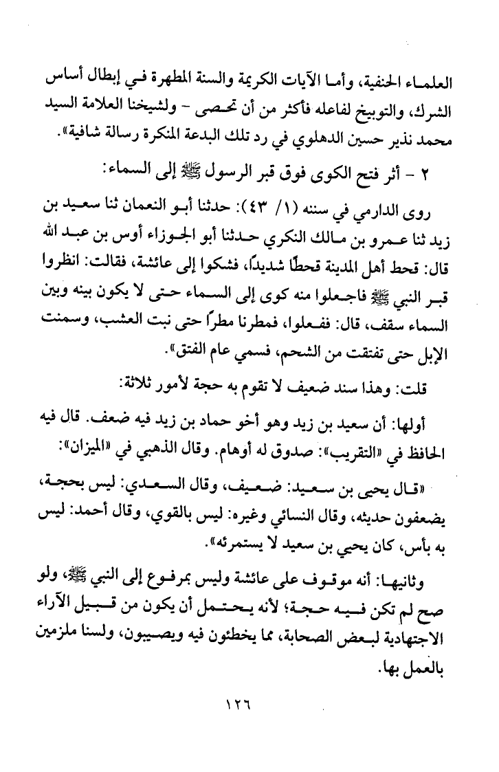 وثانيهما: أنه موقوف على عائشة وليس بمرفوع إلى النبي صلى الله عليه وسلم، ولو صح لم تكن فيه حجة، لأنه يحتمل أن يكون من قبيل الآراء الاجتهادية لبعض الصحابة، مما يخطئون فيه ويصيبون، ولسنا ملزمين بالعمل بها.