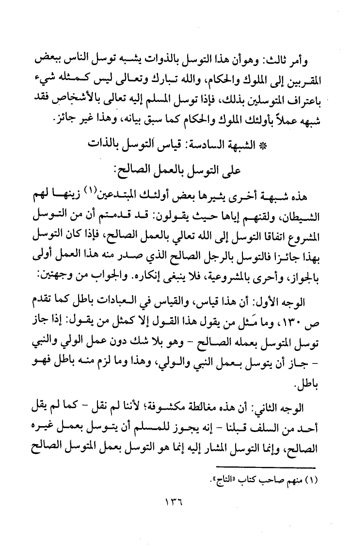الشبهة السادسة: قياس التوسل بالذات على التوسل بالعمل الصالح