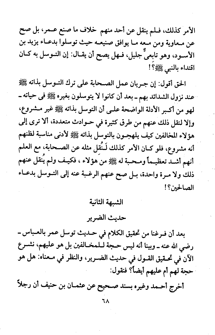 بعد أن فرغنا من تحقيق الكلام في حديث توسل عمر بالعباس - رضي الله عنه - وبينا أنه ليس حجة للمخالفين بل هو عليهم، نشرع الآن في تحقيق القول في حديث الضرير، والنظر في معناه: هل هو حجة لهم أم عليهم أيضاً؟ فنقول: