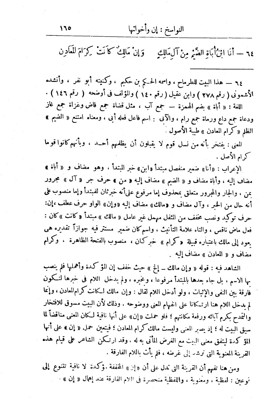 أَنا ابْن أباة الضيم من آل مَالك وَإِن مَالك كَانَت كرام الْمَعَادِن
