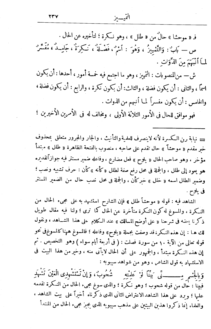 ص بَاب والتمييز وَهُوَ اسْم فضلَة نكرَة جامد مُفَسّر لما انبهم من الذوات ش من المنصوبات التَّمْيِيز وَهُوَ مَا اجْتمع فِيهِ خَمْسَة أُمُور أَحدهَا أَن يكون اسْما وَالثَّانِي أَن يكون فضلَة وَالثَّالِث أَن يكون نكرَة وَالرَّابِع أَن يكون جَامِدا وَالْخَامِس أَن يكون مُفَسرًا لما انبهم من الذوات فَهُوَ مُوَافق للْحَال فِي الْأُمُور الثَّلَاثَة الأولى ومخالف فِي الْأَمريْنِ الْأَخيرينِ