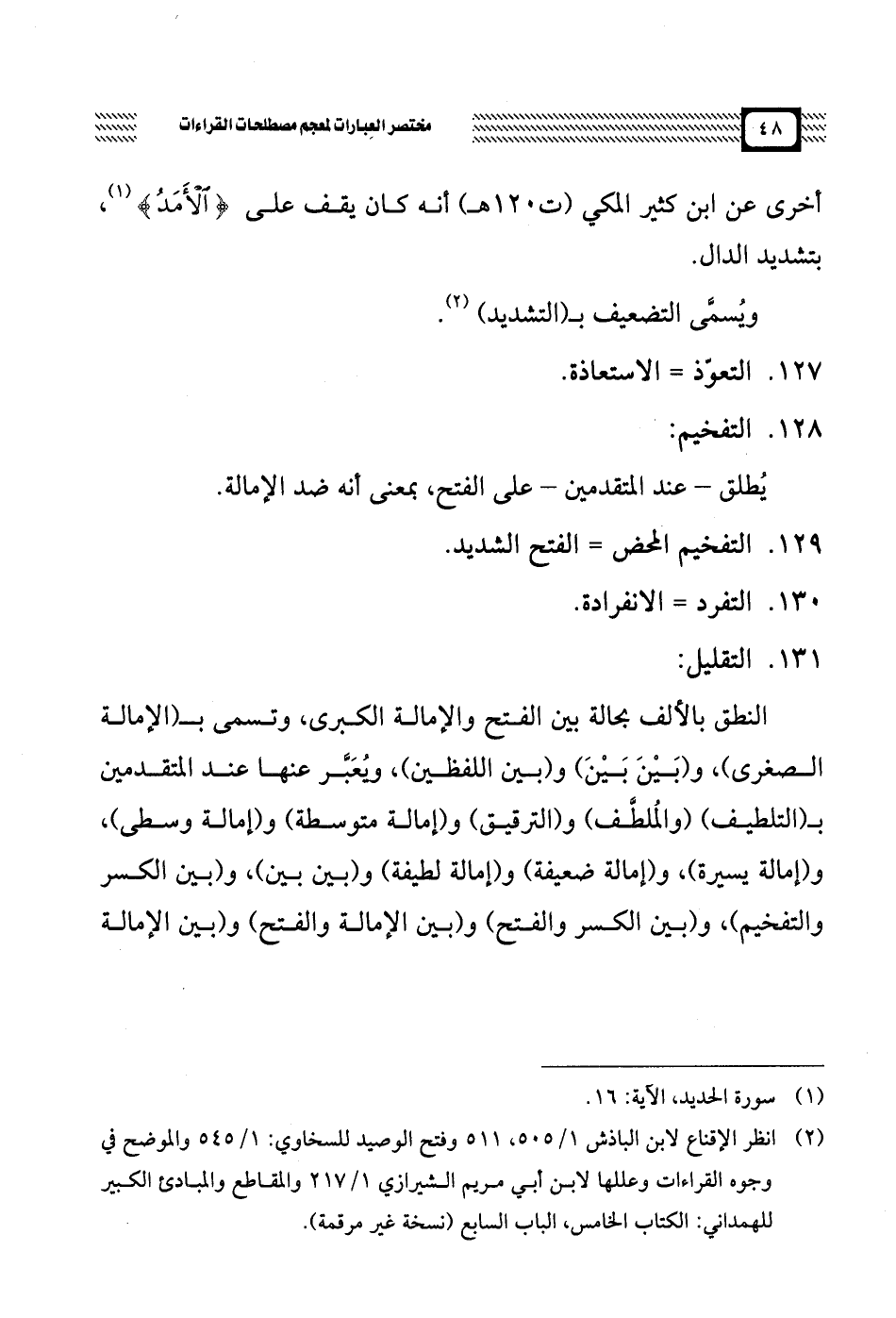 129 - التفخيم المحض = الفتح الشديد.