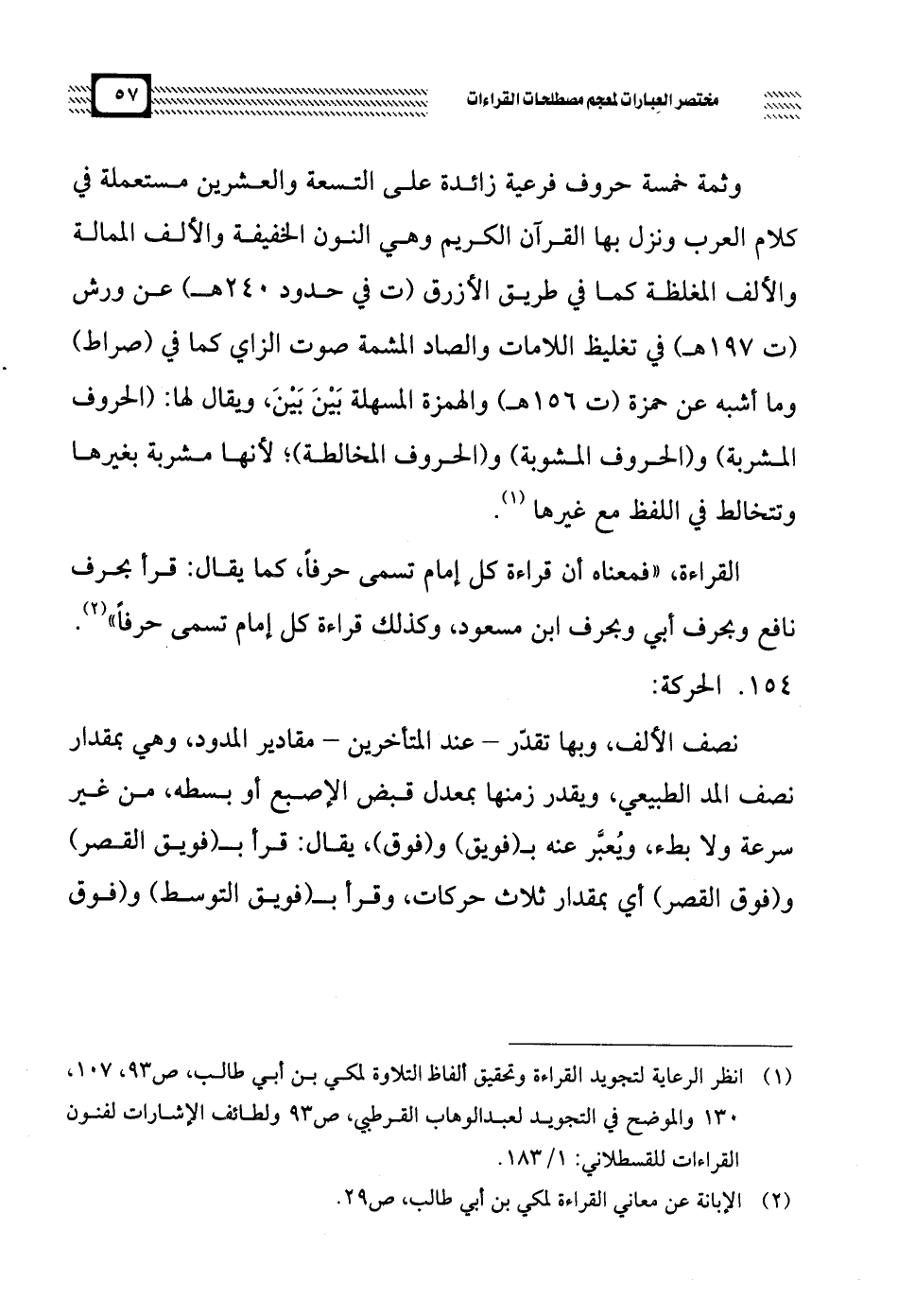 القراءة، " فمعناه أن قراءة كل إمام تسمى حرفاً، كما يقال: قرأ بحرف نافع وبحرف أبي وبحرف ابن مسعود، وكذلك قراءة كل إمام تسمى حرفاً ".
