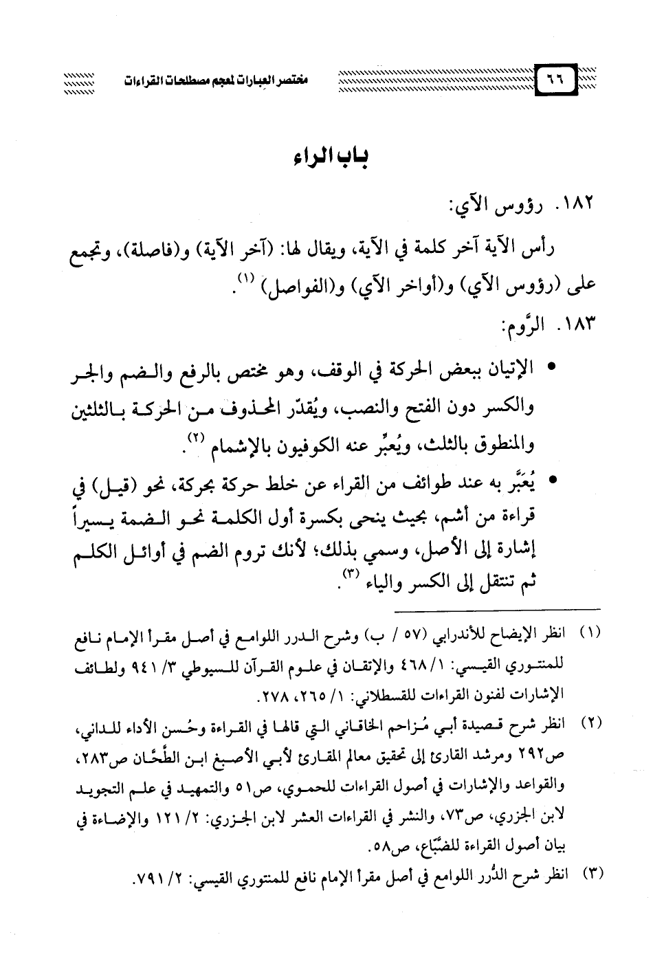 * الإتيان ببعض الحركة في الوقف، وهو مختص بالرفع والضم والجر والكسر دون الفتح والنصب، ويُقدَّر المحذوف من الحركة بالثلثين والمنطوق بالثلث، ويُعبَّر عنه الكوفيون بالإشمام.