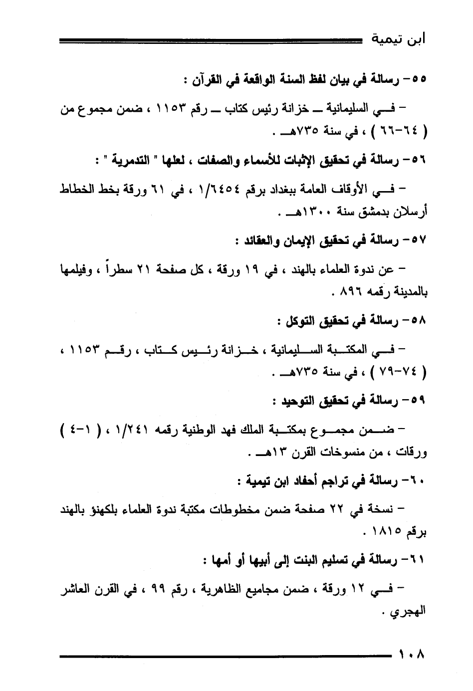 60- رسالة في تراجم أحفاد ابن تيمية: