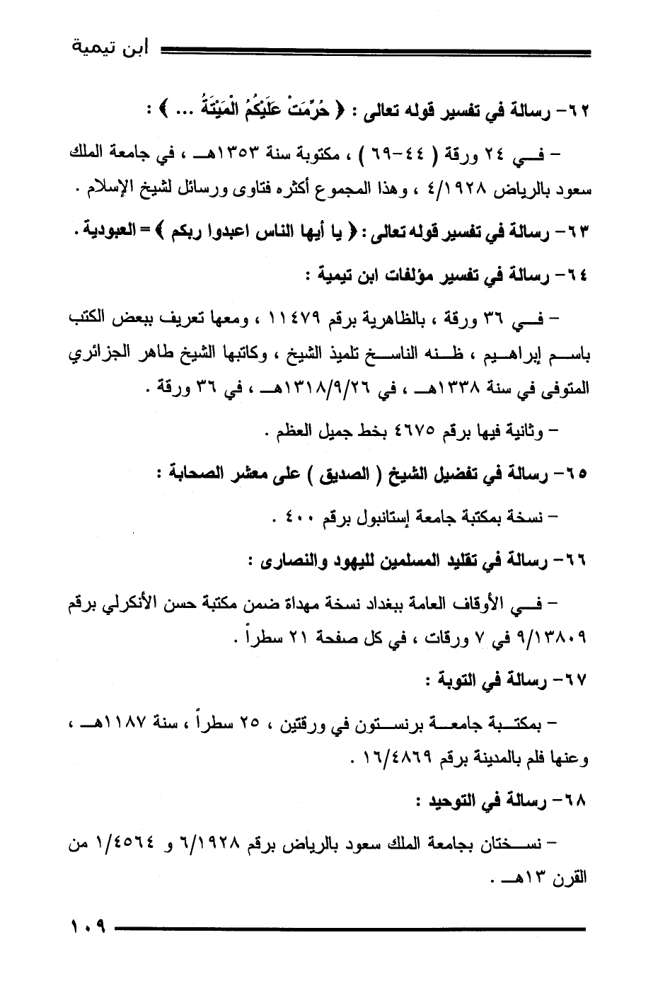64- رسالة في تفسير مؤلفات ابن تيمية: