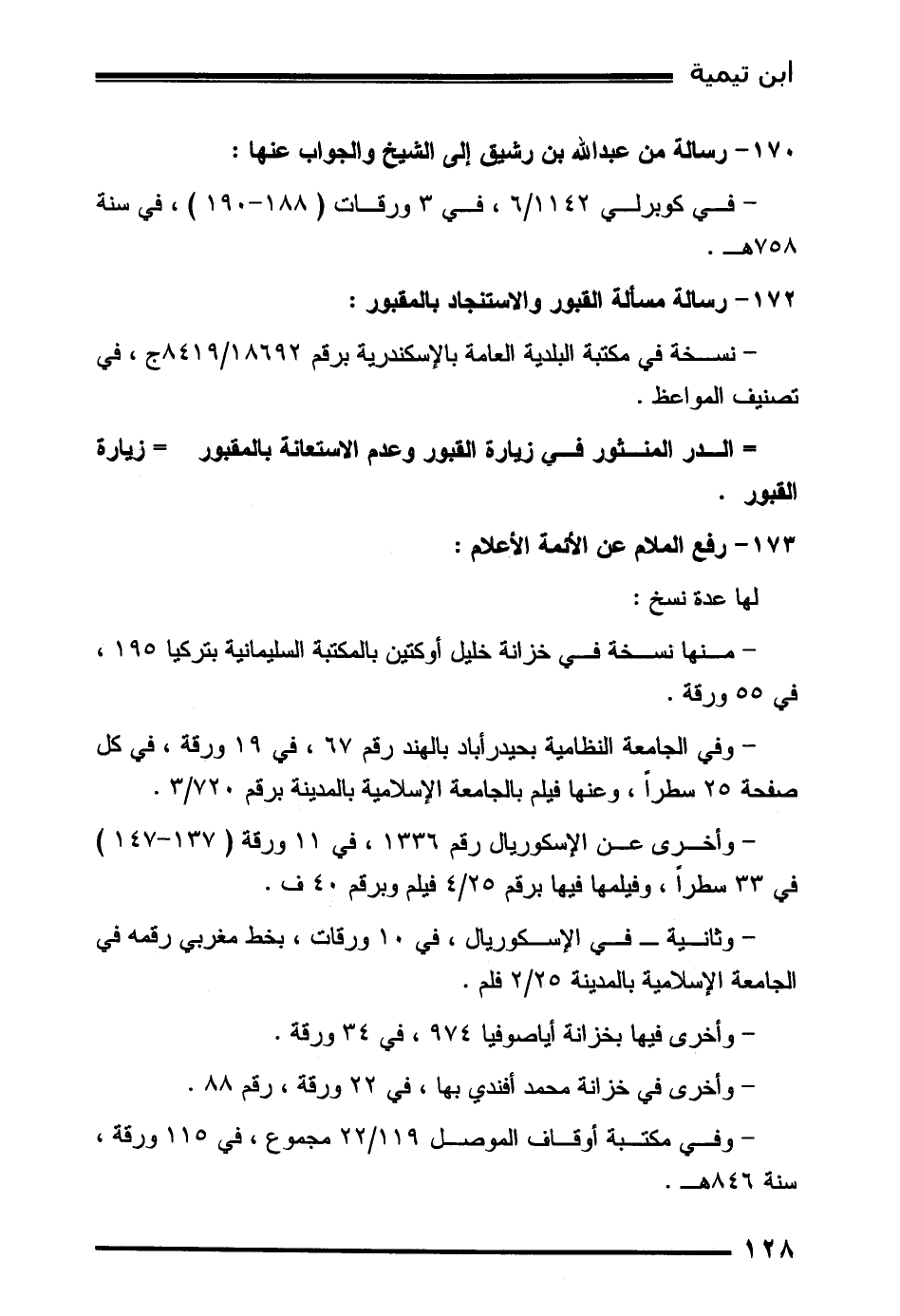 172- رسالة مسألة القبور والاستنجاد بالمقبور: