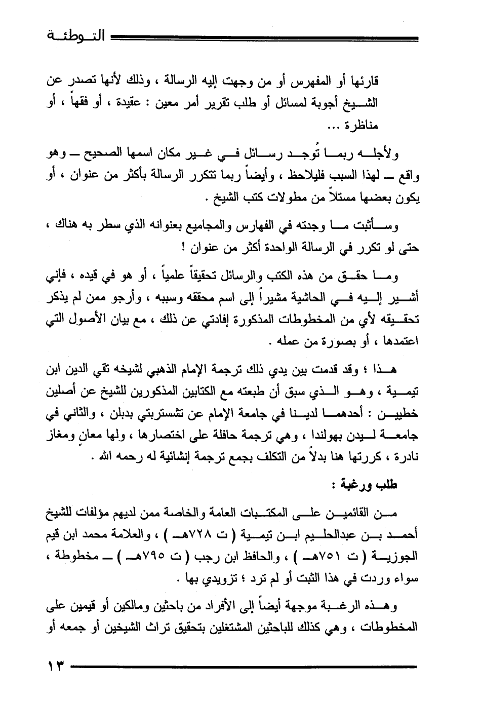 من القائمين على المكتبات العامة والخاصة ممن لديهم مؤلفات للشيخ أحمد بن عبد الحليم ابن تيمية (ت 728هـ) ، والعلامة محمد ابن قيم الجوزية (ت 751هـ) ، والحافظ ابن رجب (ت 795هـ) ـ مخطوطة، سواء وردت في هذا الثبت أو لم ترد؛ تزويدي بها.