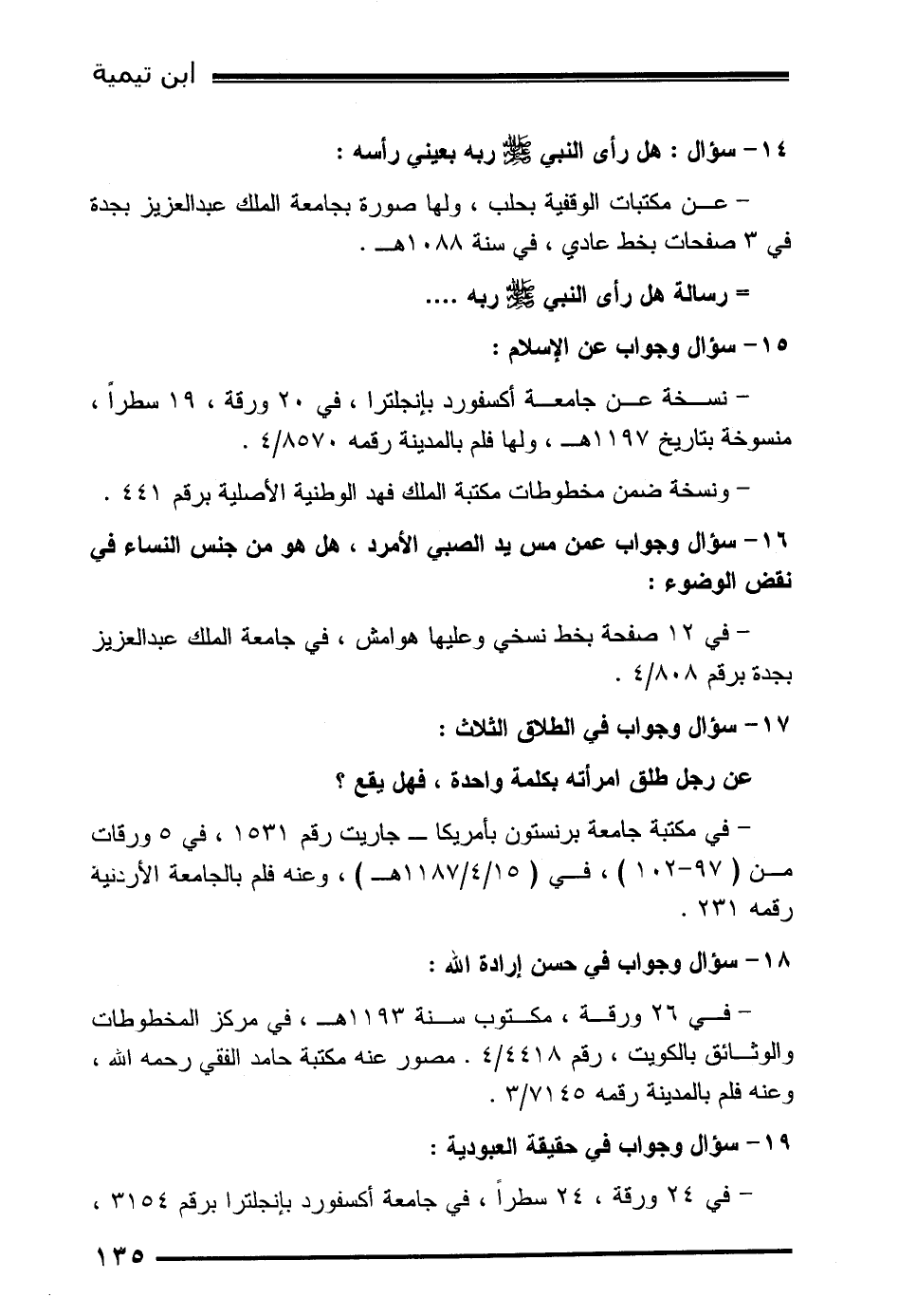 - عن مكتبات الوقفية بحلب، ولها صورة بجامعة الملك عبد العزيز بجدة في 3 صفحات بخط عادي، في سنة 1088هـ.