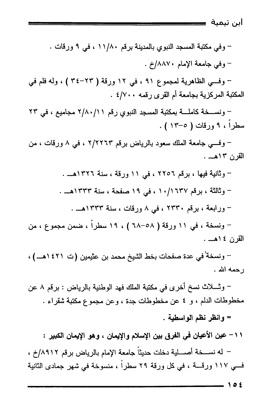11- عين الأعيان في الفرق بين الإسلام والإيمان، وهو الإيمان الكبير: