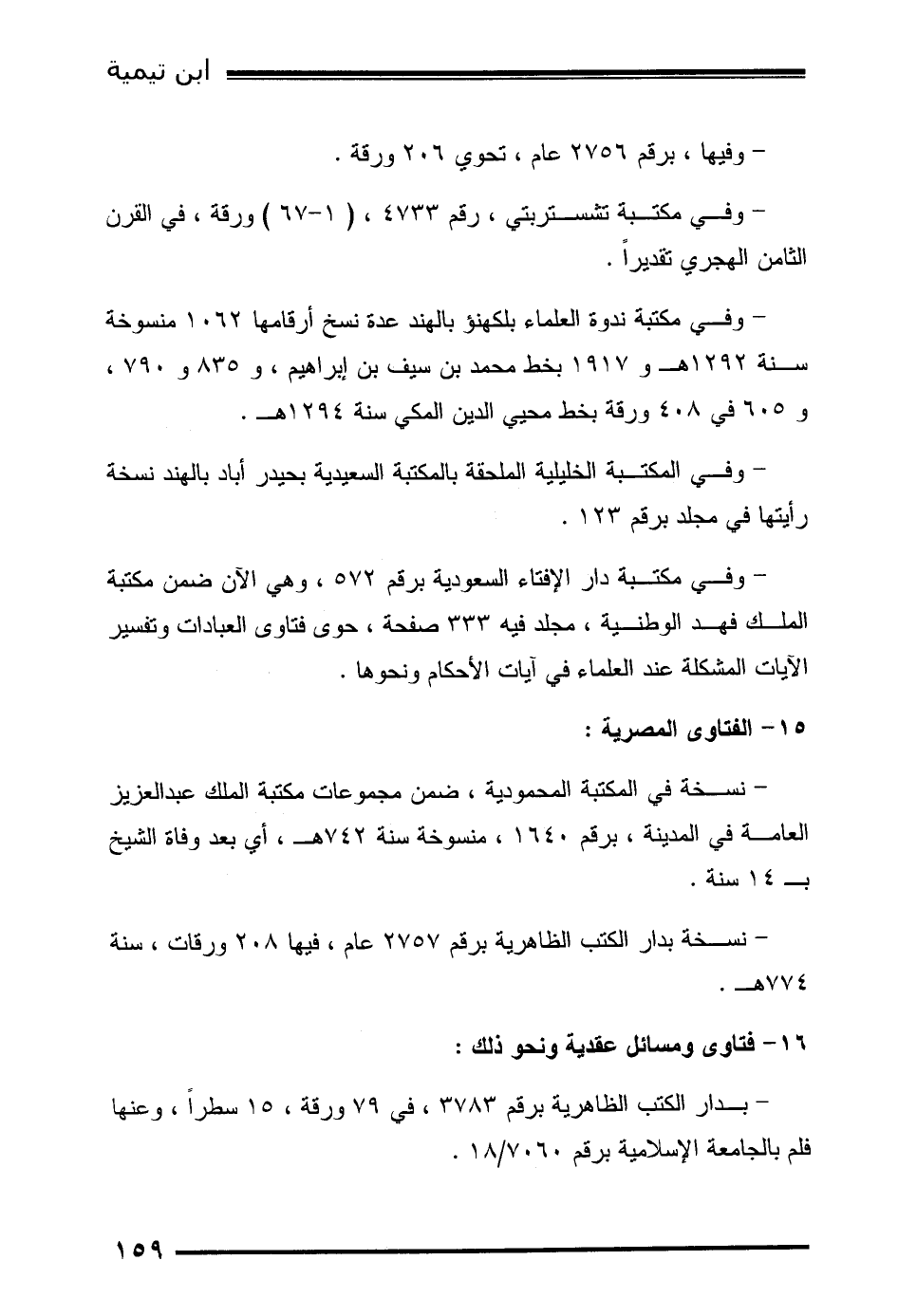- وفي مكتبة دار الإفتاء السعودية برقم 572، وهي الآن ضمن مكتبة الملك فهد الوطنية، مجلد فيه 333 صفحة، حوى فتاوى العبادات وتفسير الآيات المشكلة عند العلماء في آيات الأحكام ونحوها.