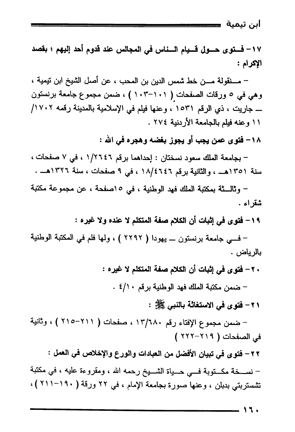 - ضمن مجموع الإفتاء رقم 680/13، صفحات (211-215) ، وثانية في الصفحات (219-222)