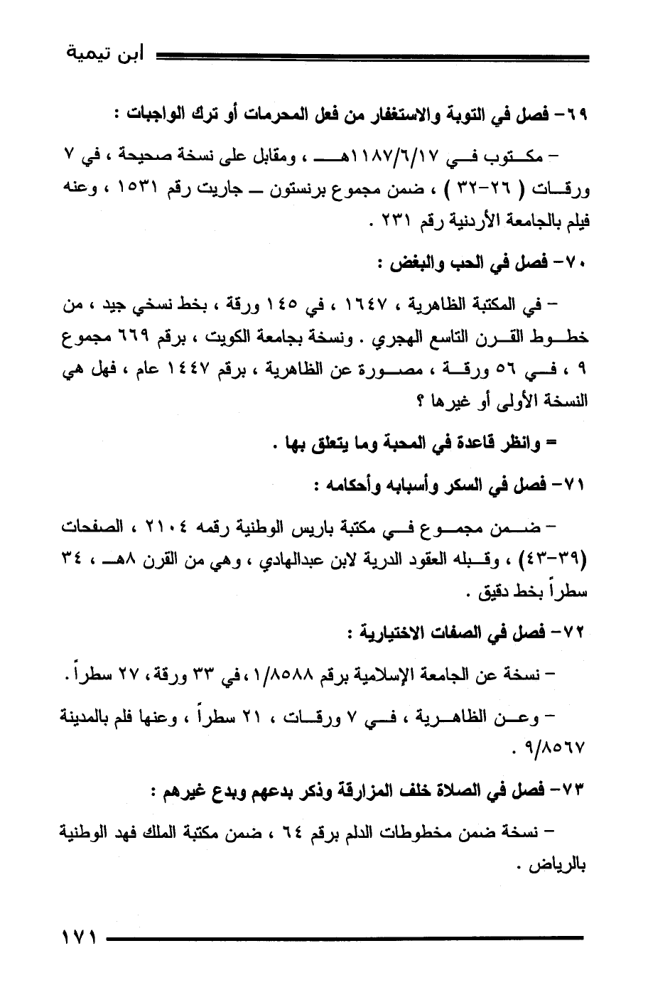 - وعن الظاهرية، في 7 ورقات، 21 سطراً، وعنها فلم بالمدينة 8567/9.